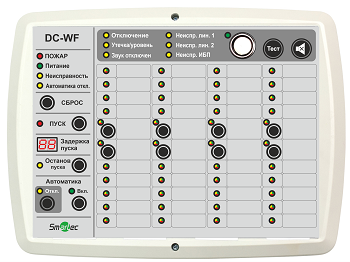 Для работы в системах пожарной сигнализации блок индикации и управления системой водяного пожаротушения DC-WF подключается к интерфейсной линии RS-485 совместно с одним или несколькими центральными блоками управления Smartec серии Vesta 01F (в стандартном или DIN-исполнении). При этом общее количество всех блоков на линии может достигать 63. На переднюю панель блока управления пожаротушением выведены 15 кнопок управления, 8 из которых свободно программируемые, а также программируемые и непрограммируемые (обобщенные) световые индикаторы состояния (СИД). Помимо этого, DC-WF оборудован мини дисплеем для отсчета времени задержки пуска пожаротушения и тревожной звуковой сигнализацией.