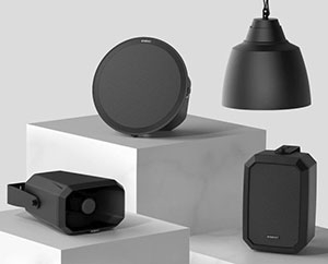 • Специально для уличных условий эксплуатации выпускается рупорный IP-громкоговоритель SPA-H100B/W, который защищен от пыли и влаги по стандарту IP66, стабильно работает в диапазоне температур от -35 до +55 °С и может устанавливаться на потолке, стене и даже на столбе. Все громкоговорители представлены в двух цветах - черном и белом, о чем говорят индексы B и W в названии моделей.